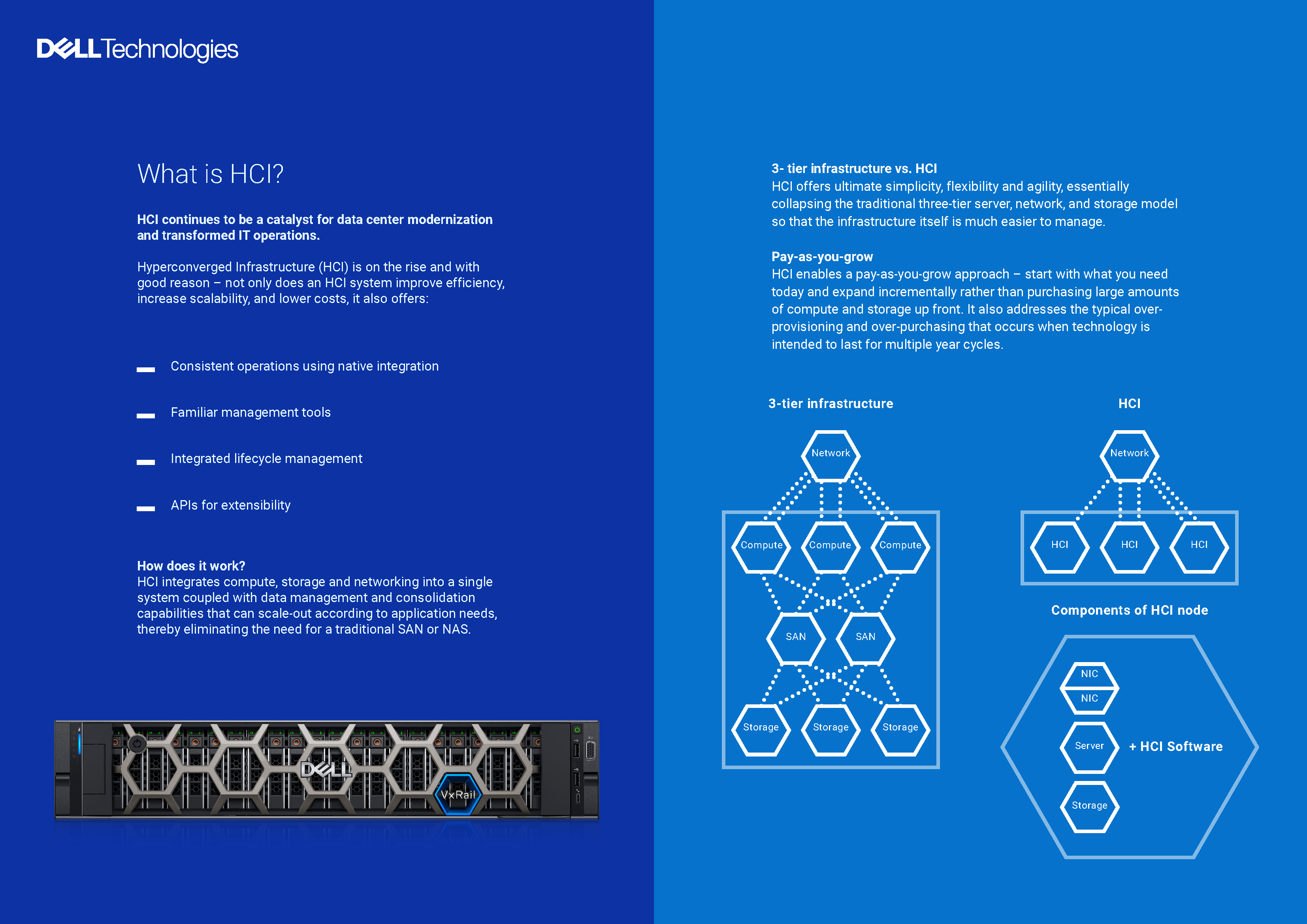 Agility is a key factor in accelerating IT transformation. The agility, scalability, and simplicity of Hyperconverged infrastructure (HCI) drive IT transformation and operational efficiency. Dell EMC VxRail accelerates and simplifies IT transformation through standardization and automation. With VxRail, you don't just deploy servers, you transform your infrastructure.