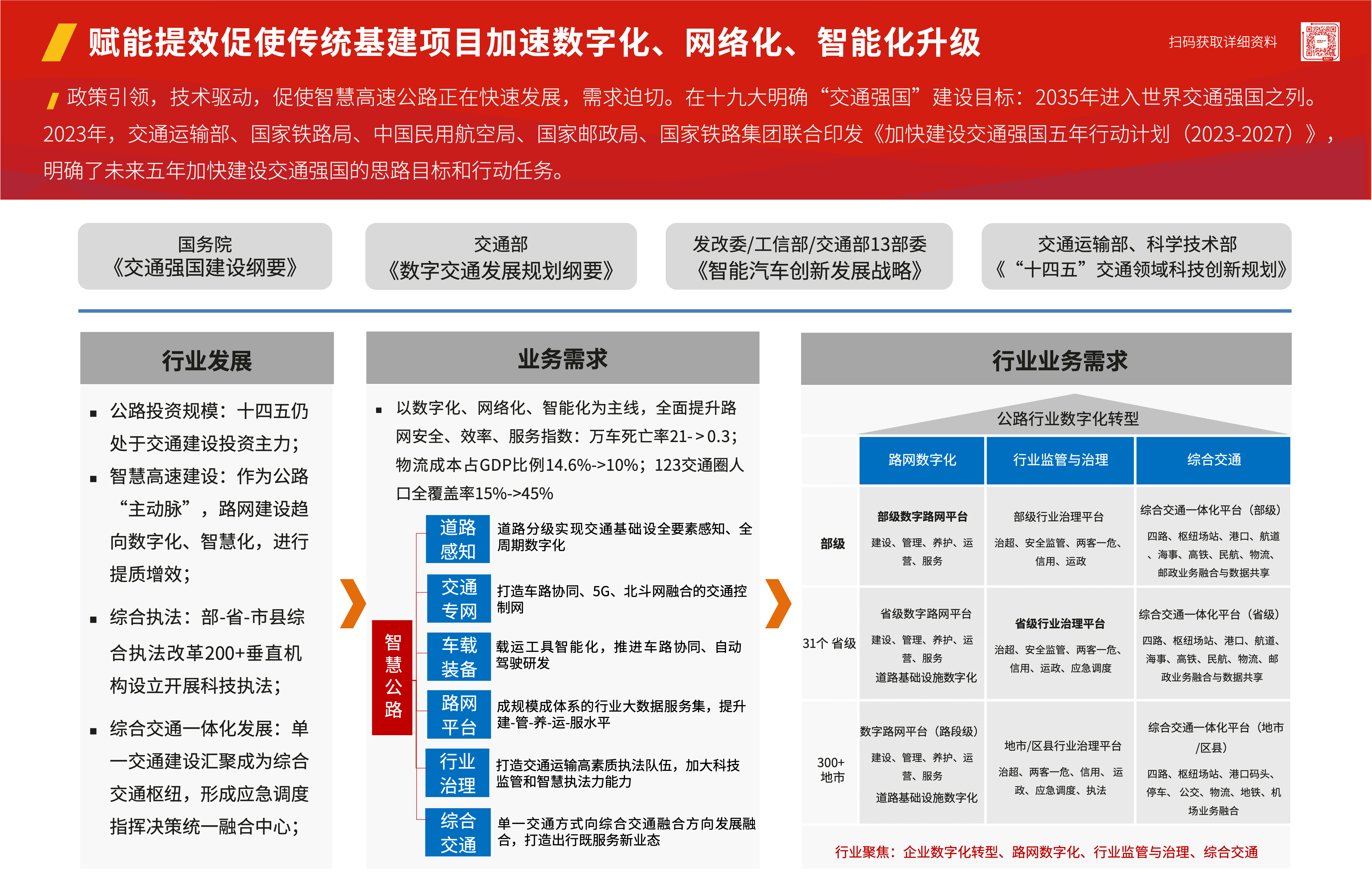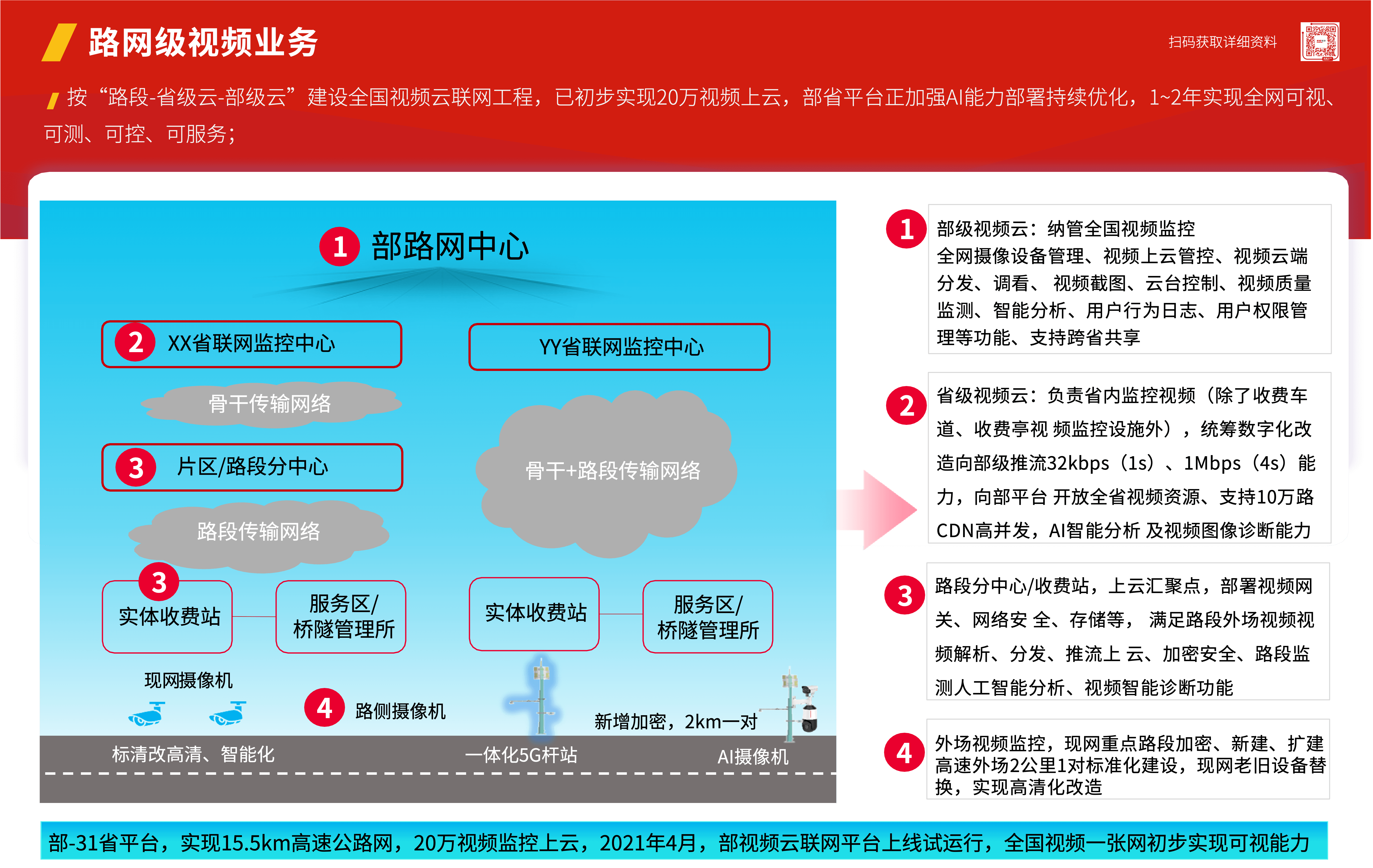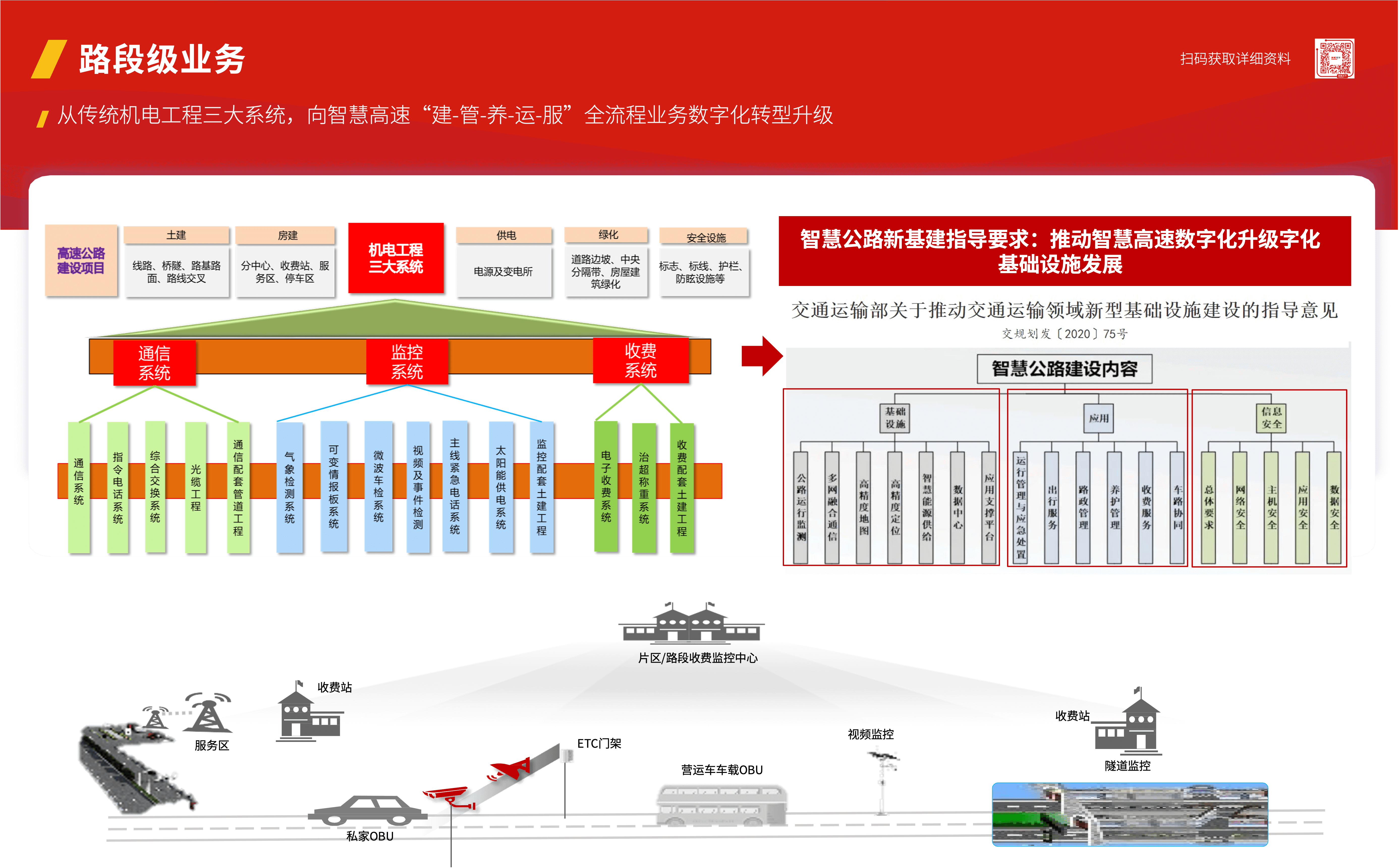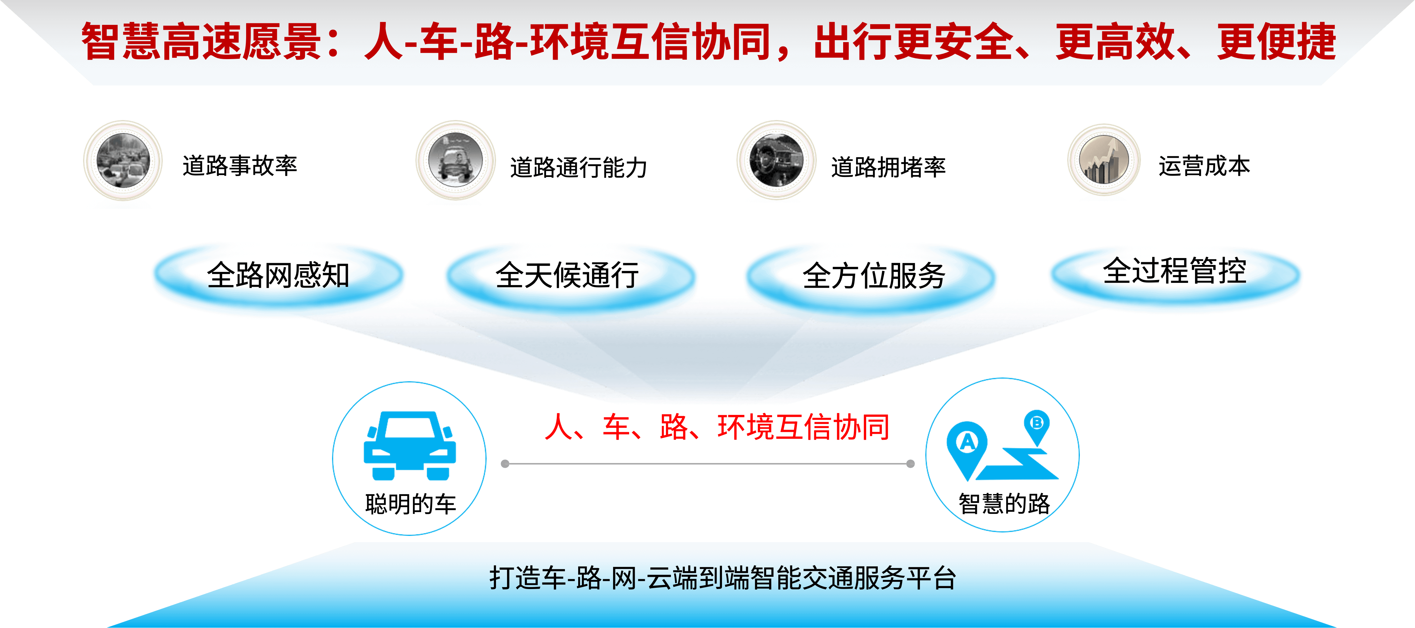 以云计算、大数据、云原生等新ICT技术为基础,打造全时空运行监测、全路域主动管控、全方位出行服务的智慧高速公路解决方案。