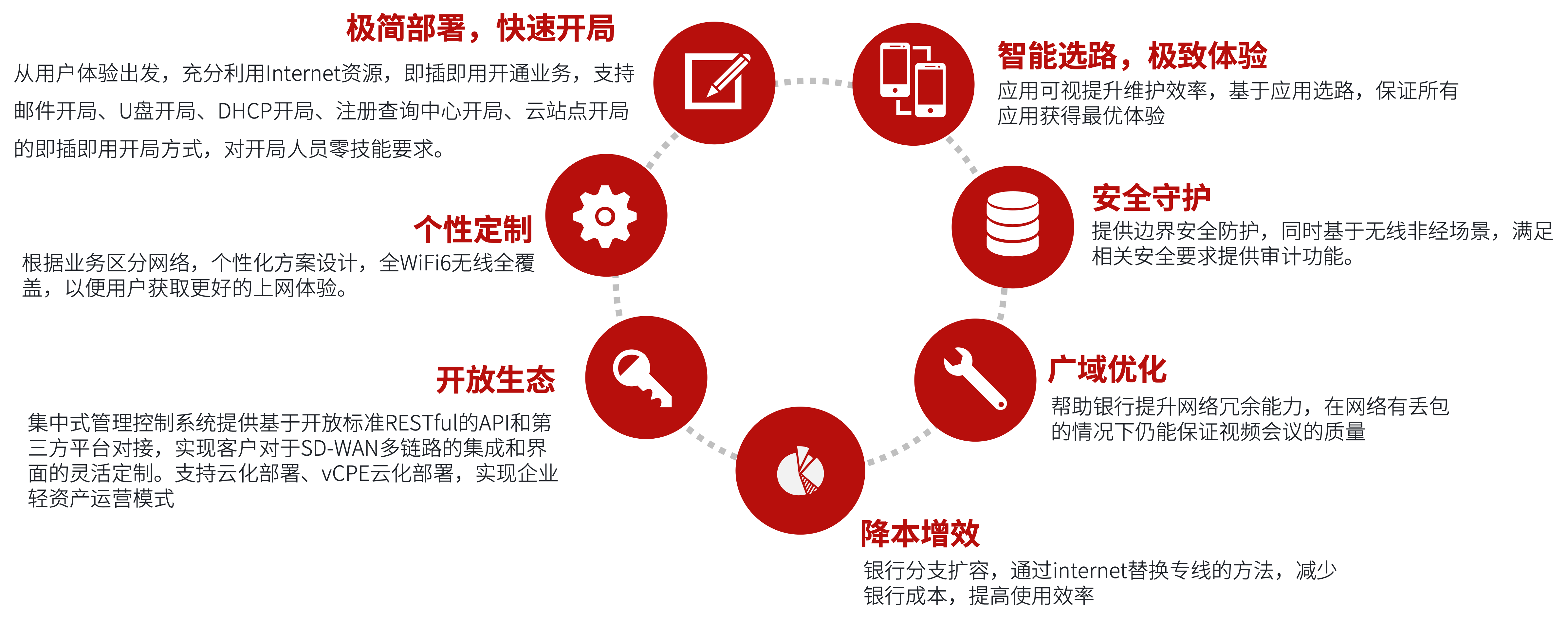 从高性能,高可靠网络骨干、高覆盖,高负载无线接入、网络安全防护及智能管理平台等方面入手,提供高效、一致体验及全方位安全的解决方案。