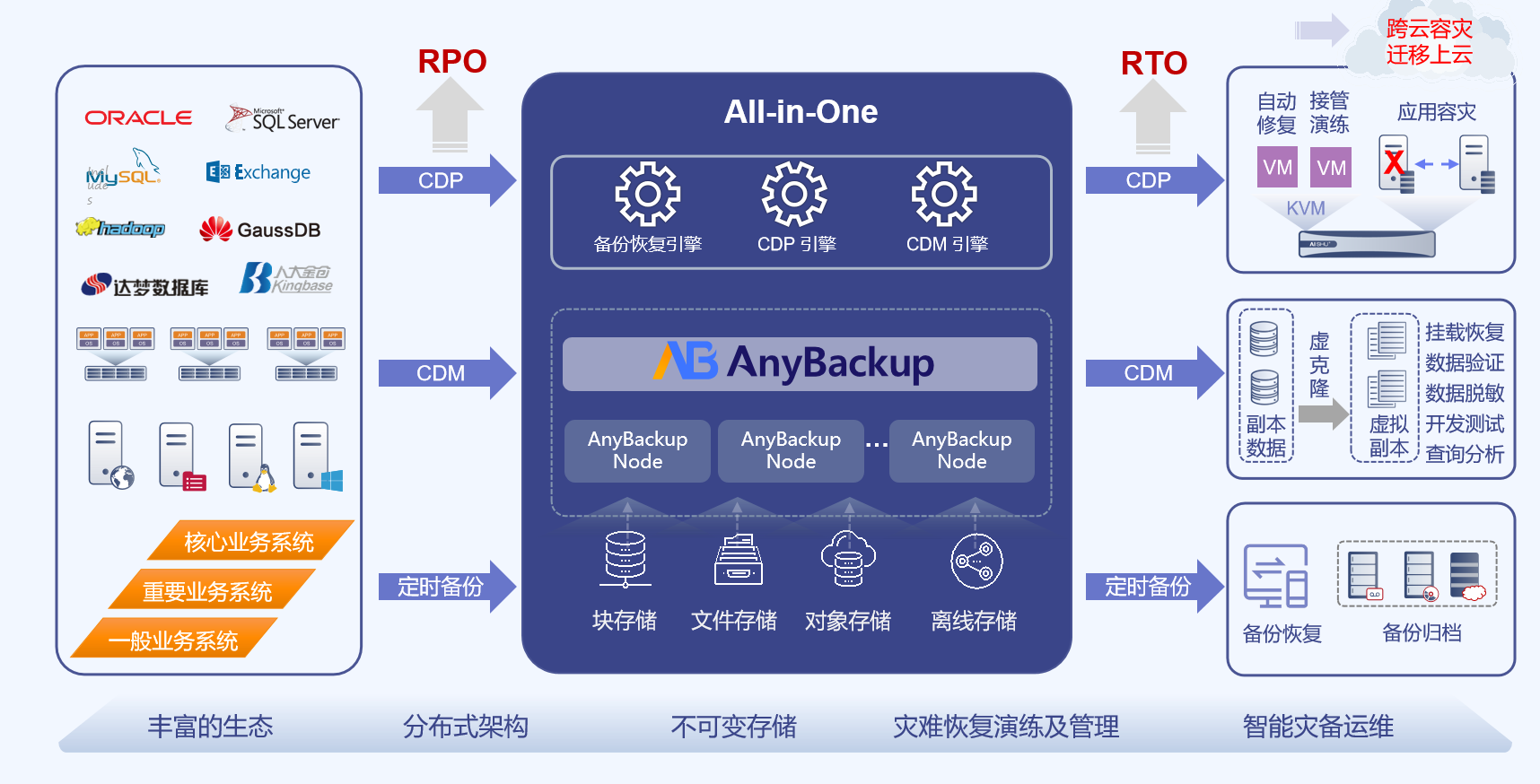 基于定时备份、CDM和CDP提供分级数据保护,并具备广泛的兼容性