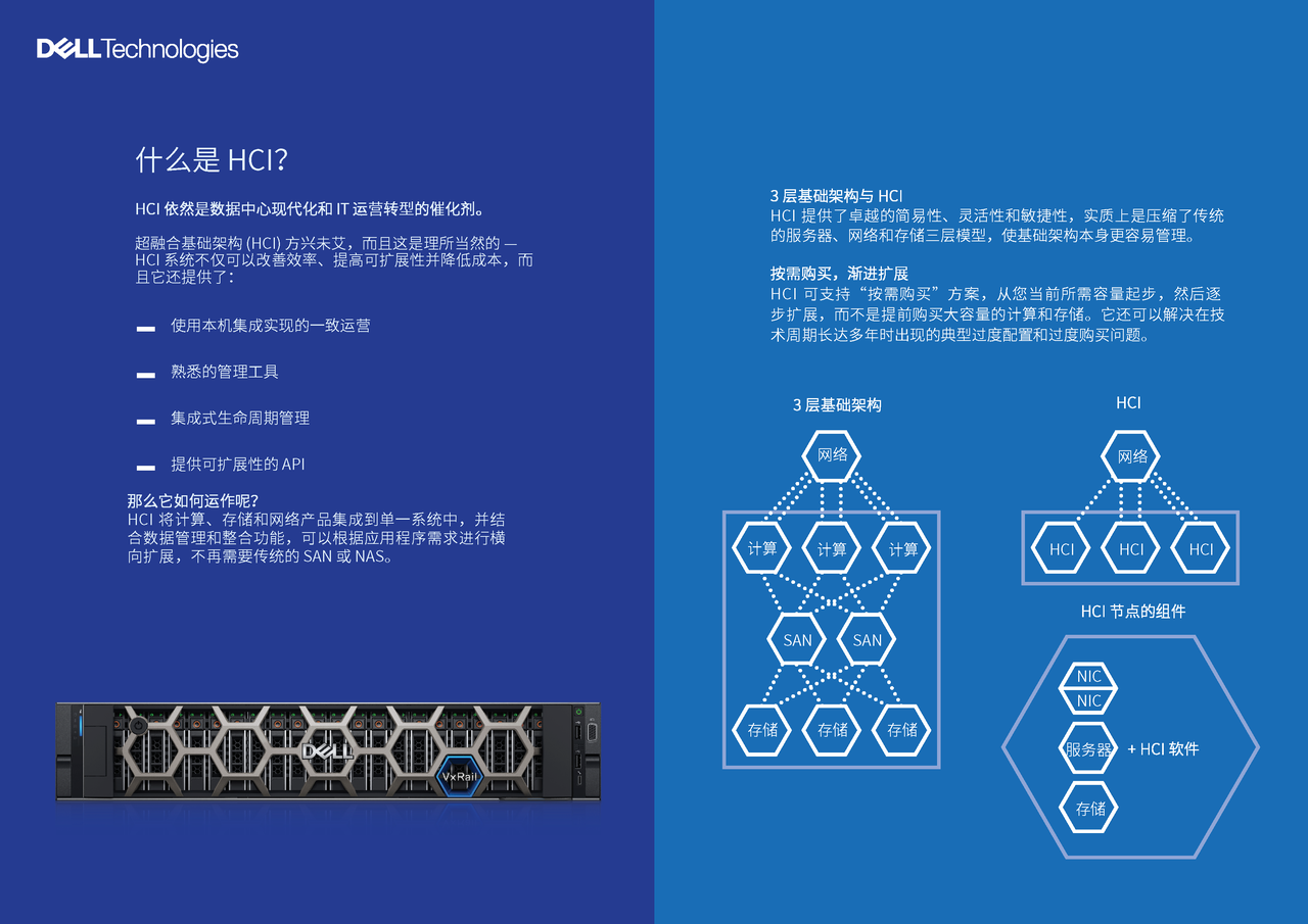 敏捷性是加速 IT 转型的关键因素。超融合基础架构 (HCI) 的敏捷性、可扩展性和简易性推动着 IT 转型和运营效率。 Dell EMC VxRail通过标准化和自动化加快并简化 IT 转型。借助 VxRail,您不只是部署服务器,还会转变您的基础架构。