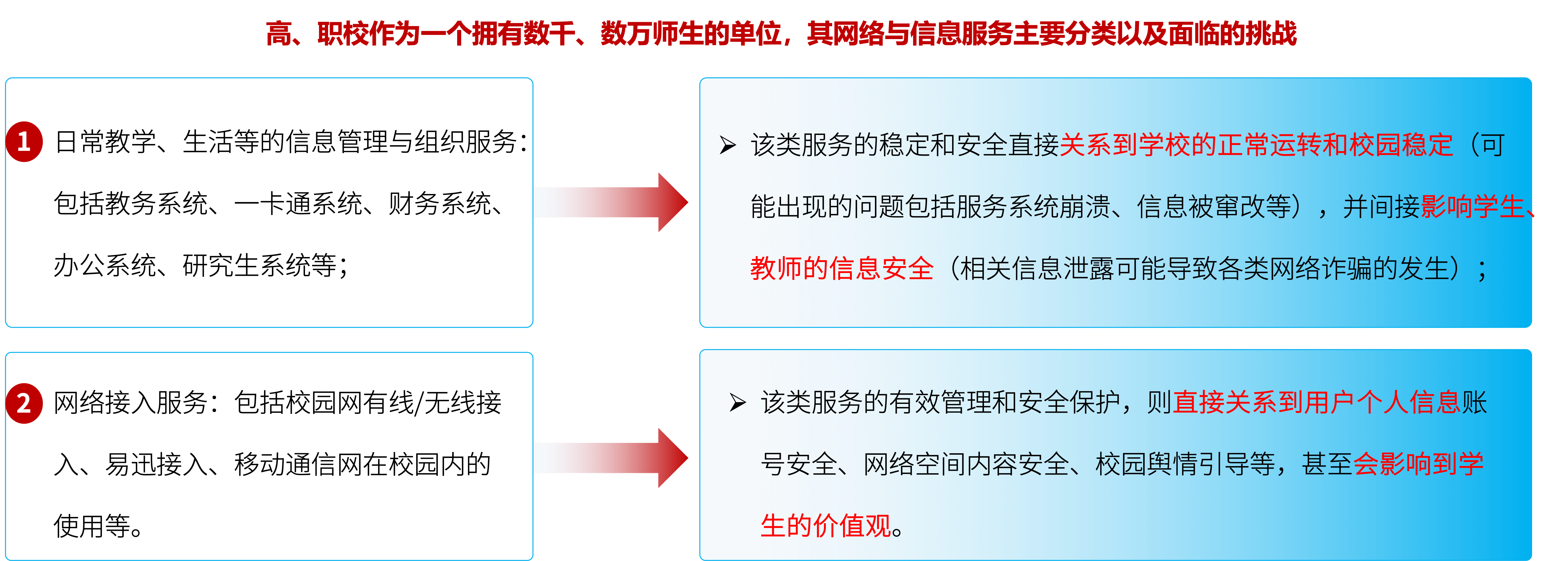 随着校园网应用的深入,以及网络技术的高速发展,校园网络已成为衡量一个学校教育信息化、现代化、网络化的重要标志。但要真正发挥网络的优势,还应该注重网络安全问题的预防与解决方案。