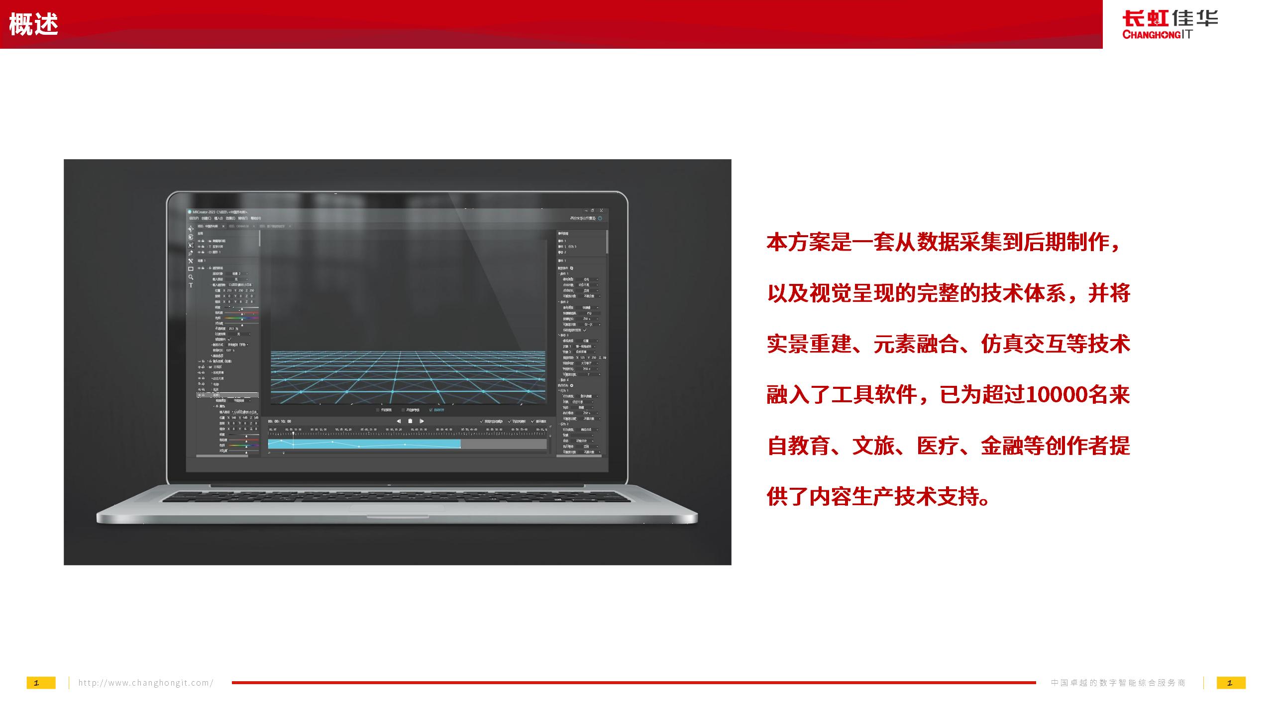 本方案是一套从数据采集到后期制作,以及视觉呈现的完整的技术体系,并将实景重建、元素融合、仿真交互等技术融入了工具软件的解决方案,已为超过10000名来自教育、文旅、医疗、金融等创作者提供了内容生产技术支持。