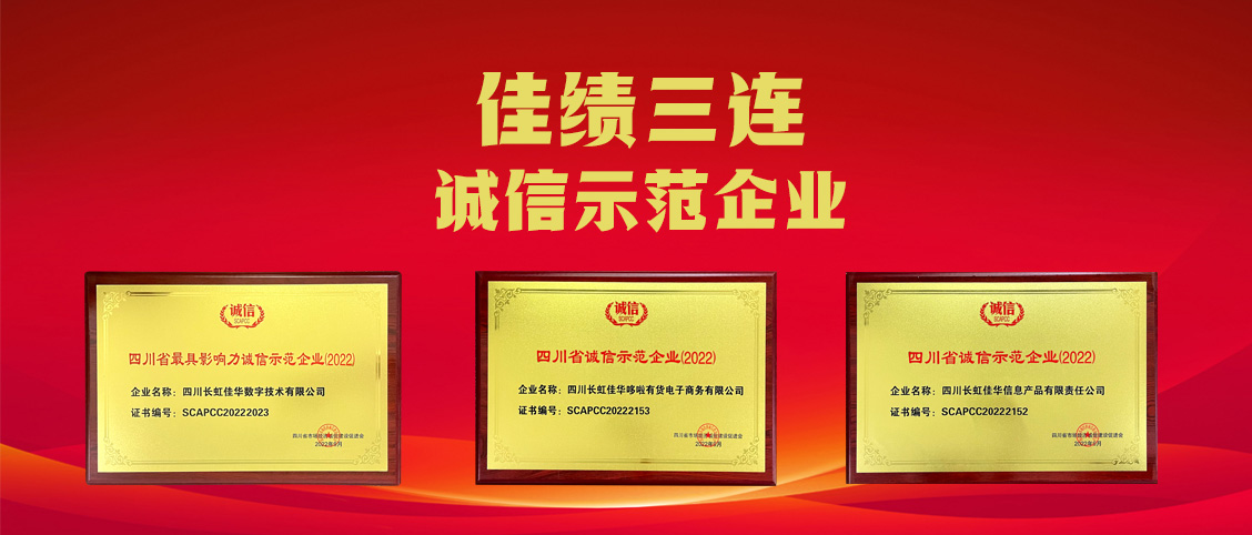 四川省市場經濟誠信建設促進會組織開展了“四川省企業誠信示範活動”,長虹佳華及旗下兩家子公司憑藉誠信的經營及完善的服務,在評選活動中榮獲“誠信示範企業”稱號,其中四川長虹佳華數字技術有限公司獲得“四川省最具影響力誠信示範企業”稱號。