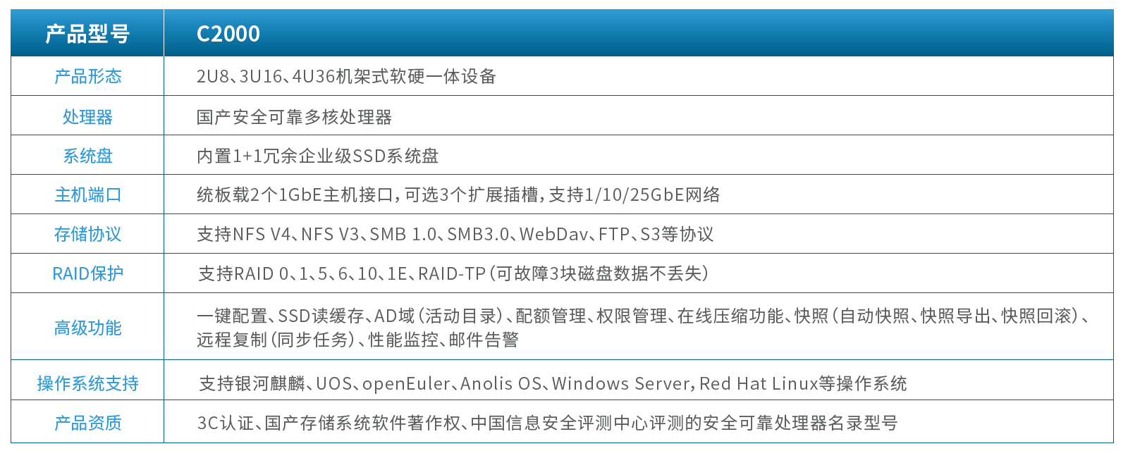 系統基於中國信息安全評測中心評測的安全可靠處理器平臺構建,存儲軟件具備自主知識產權的軟件,滿足信創存儲平臺要求。
